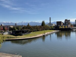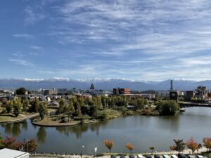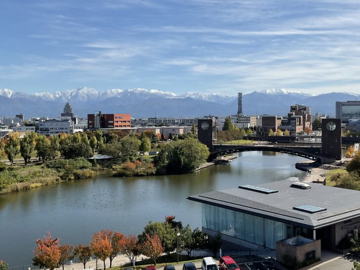 富岩運河環水公園は富山駅北口から徒歩10分、雄大な立山連峰を望むことができ、両岸に遊歩道や芝生のスロープなど配置しコーヒーショップ、フレンチ、イタリアン、などのお店がある憩いの場の水辺の公園です。