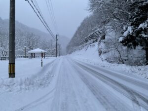 富山からは国道41号線で行きました。富山〜神岡町〜数河高原〜古川〜高山〜下呂温泉〜名古屋まで行く国道です。富山駅周辺は約38㌢ほどの積雪でしたが国道は除雪が行き届き路面にはほとんど雪がありませんでした。神岡町を過ぎて神原峠道を走りました。路面は圧雪があり路肩は80㌢ほどありましたが車両は四輪駆動車でエアーサスペンション車なので車高を上げての安定走行ができ古川から国道41号線に戻り高山に入りました。数河高原はダウンヒルがありカーブも多くて距離も少し長くなるので選択しませんでした。(富山駅出発13時50分〜15時40分着)